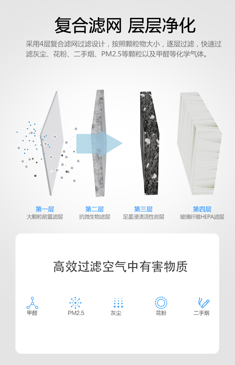 • 功能適用: 加強(qiáng)除甲醛/苯/TVOC/有毒有害化學(xué)氣體/煙味異味/除霾抑菌/防過敏源